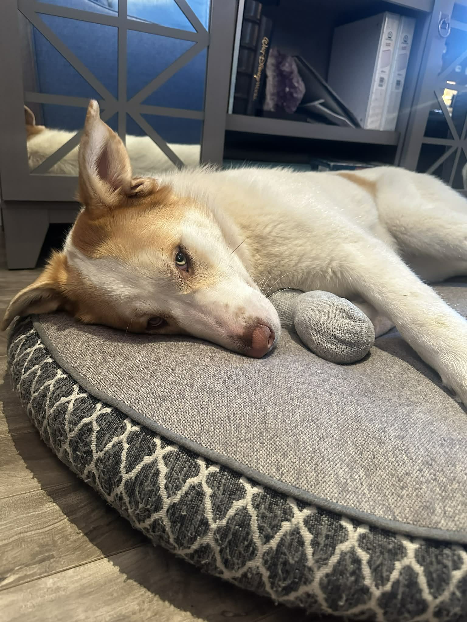 Misty mostly lives outside on an acreage with her brothers in a heated dog house but enjoys her turns coming inside to visit. She has had no accidents indoors and is very well behaved even when left alone for a little while. Misty truly deserves a home and family to call her own she is patiently waiting for someone to give her that chance. đź©·