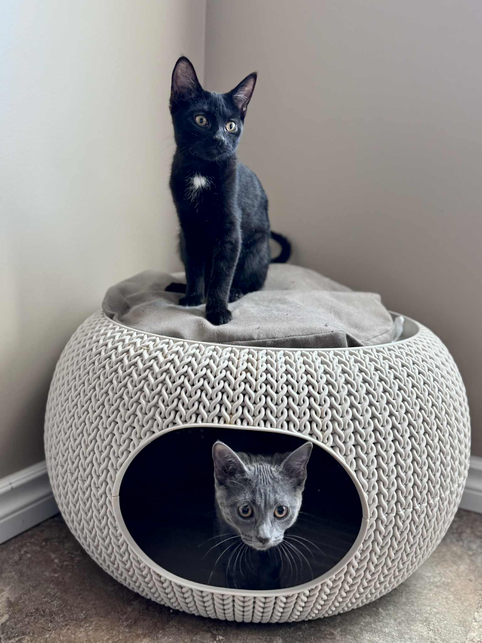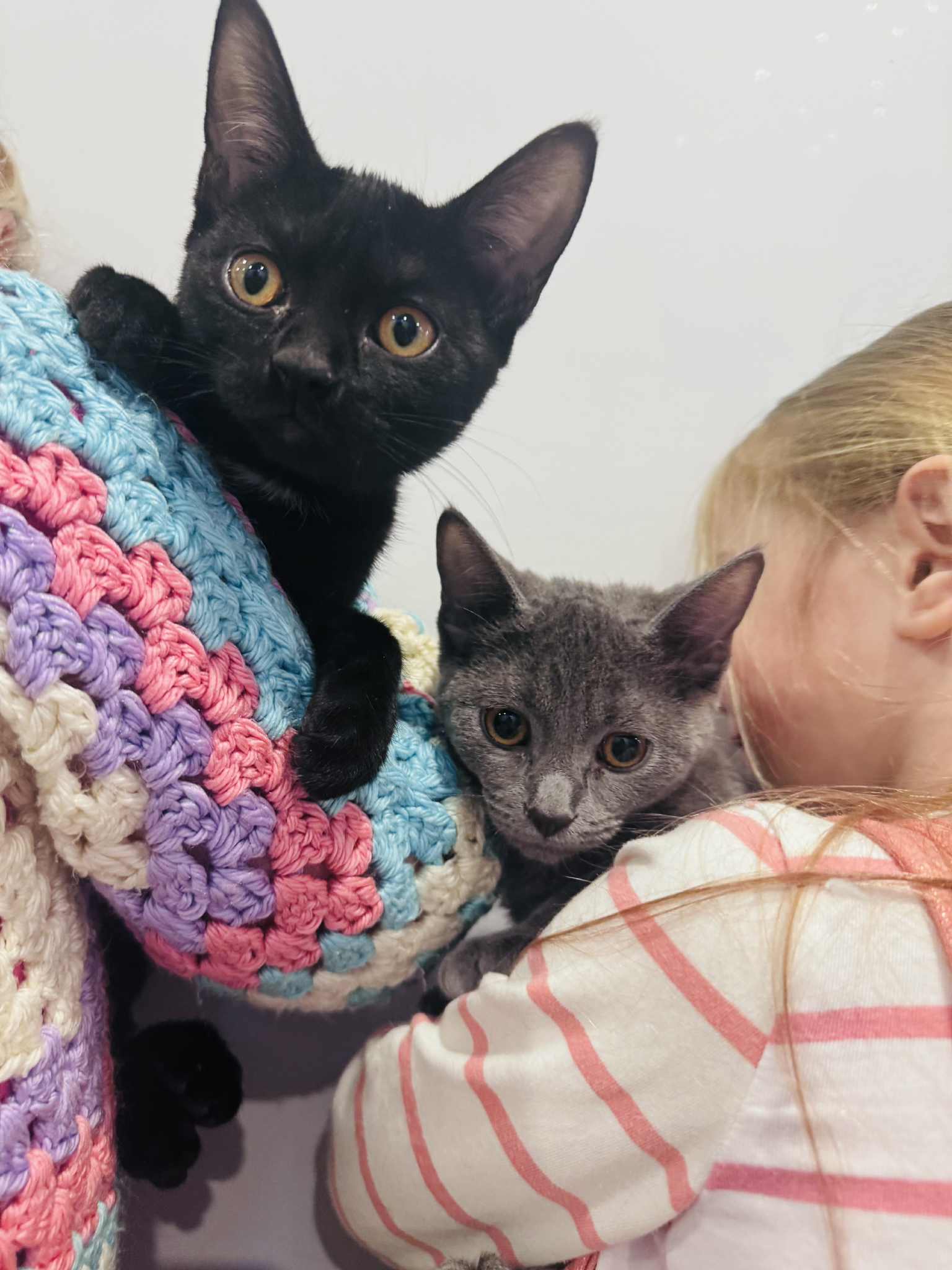 Eureeka and her sister Batly are new to the rescue and we are still getting to know them. She spent her first night hiding in her covered litter box but now enjoys exploring her surroundings, with some minor trembles when she gets nervous. Typical kitten behaviours are coming out more and more.