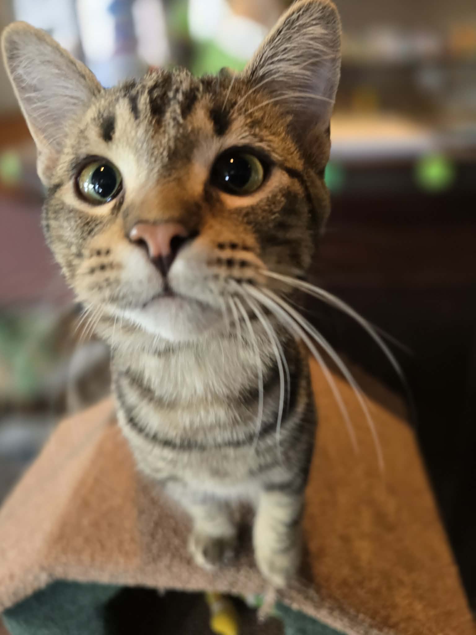 Jupiter is one of the lovable planet kittens. He looks very similar to his brother Mars but is a bit bigger and has a lighter stripe along his back. Jupiter is incredibly affectionate and adores cuddling he’ll even sweetly lick your hair while spending his evenings curled up on your lap. Despite his snuggly side, he’s also a very busy boy who loves to explore, climb, and get into everything around him